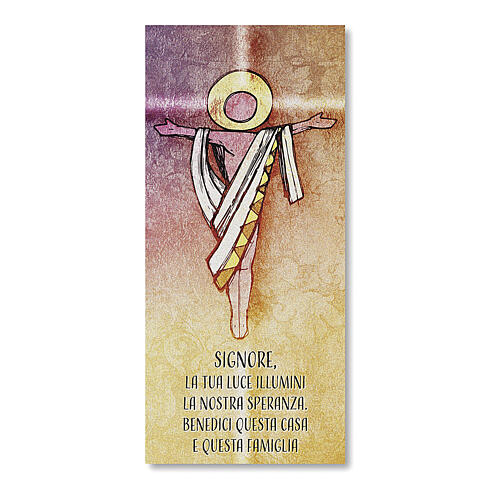 Cette Bénédiction de la Famille imprimée sur papier nacré illustre de manière contemporaine la résurrection du Christ.