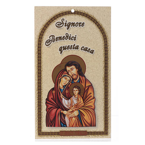 Le carton pour les bénédictions familiales est de forme rectangulaire, illustrant la Sainte Famille orthodoxe avec la phrase « Seigneur, bénis cette maison », et contient la prière pour la « Bénédiction de la Famille » à l'arrière.