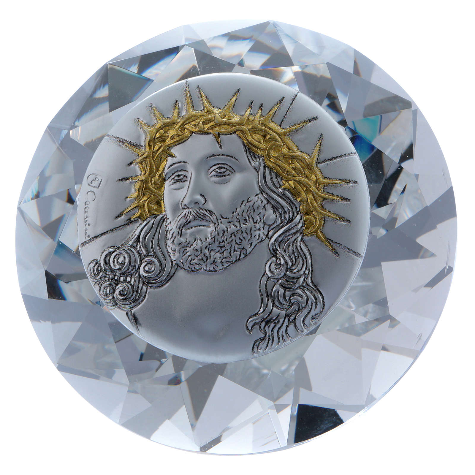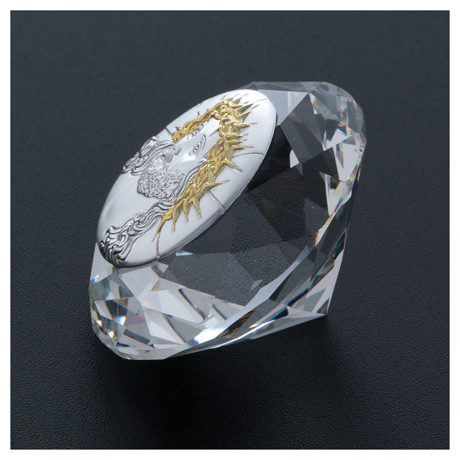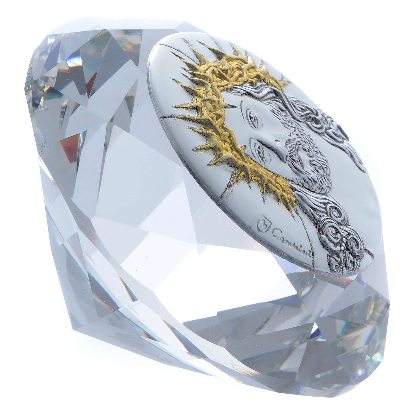 Diamant avec plaque métal Ecce Homo 4 cm. Diamant en cristal décoré d'une plaque en aluminium avec image Ecce Homo.