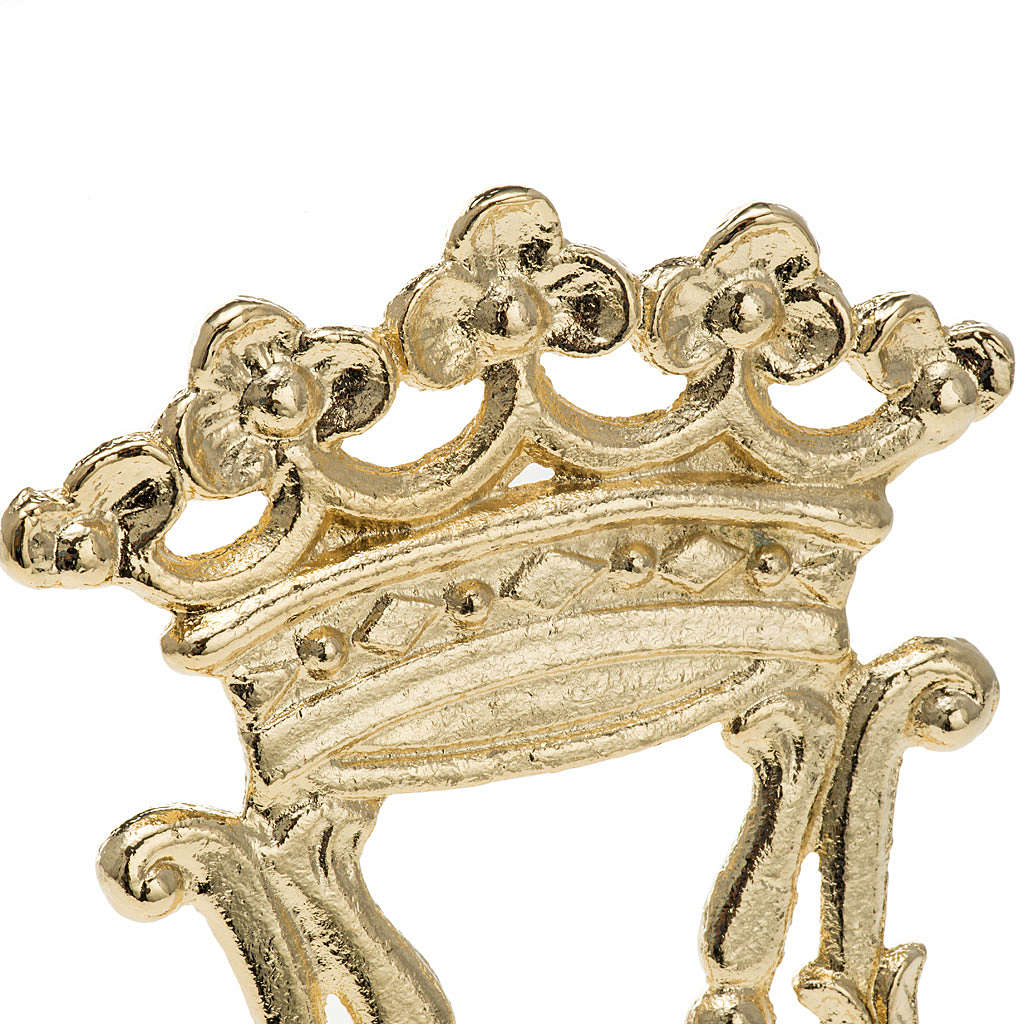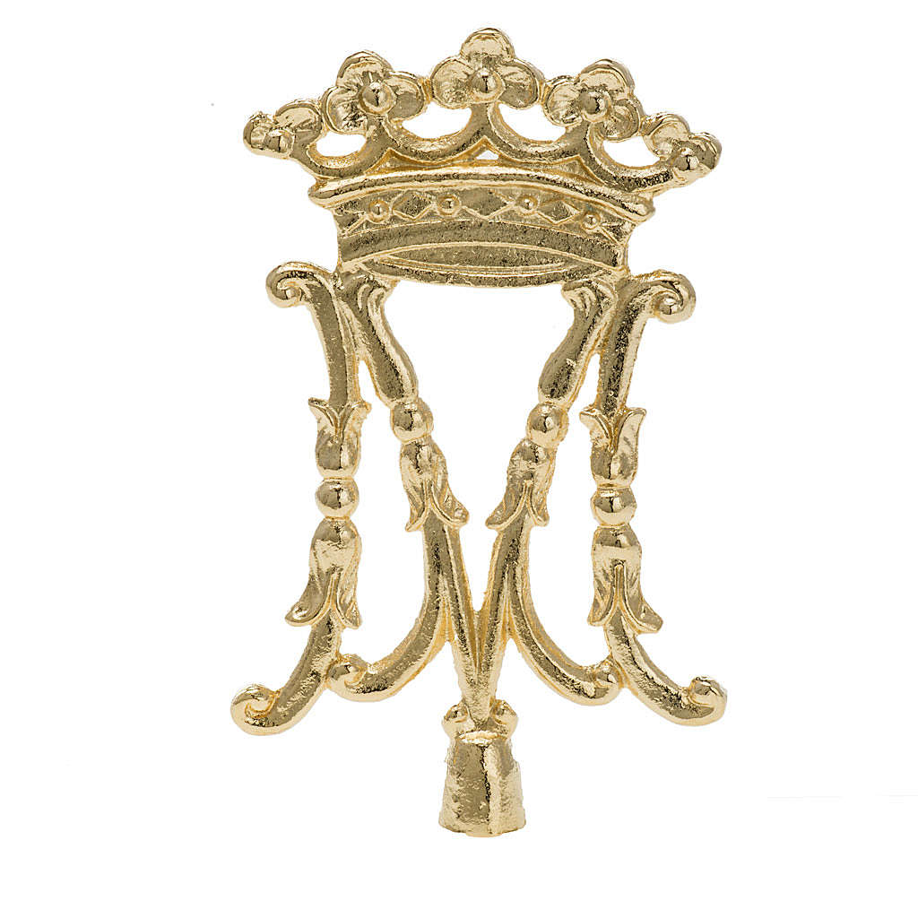 Pointe symbole marial pou support de bannière. Croix réalisée en bronze doré de 10x16 cm. Pointe à assortir avec le support pour bannière. VOIR ICI.