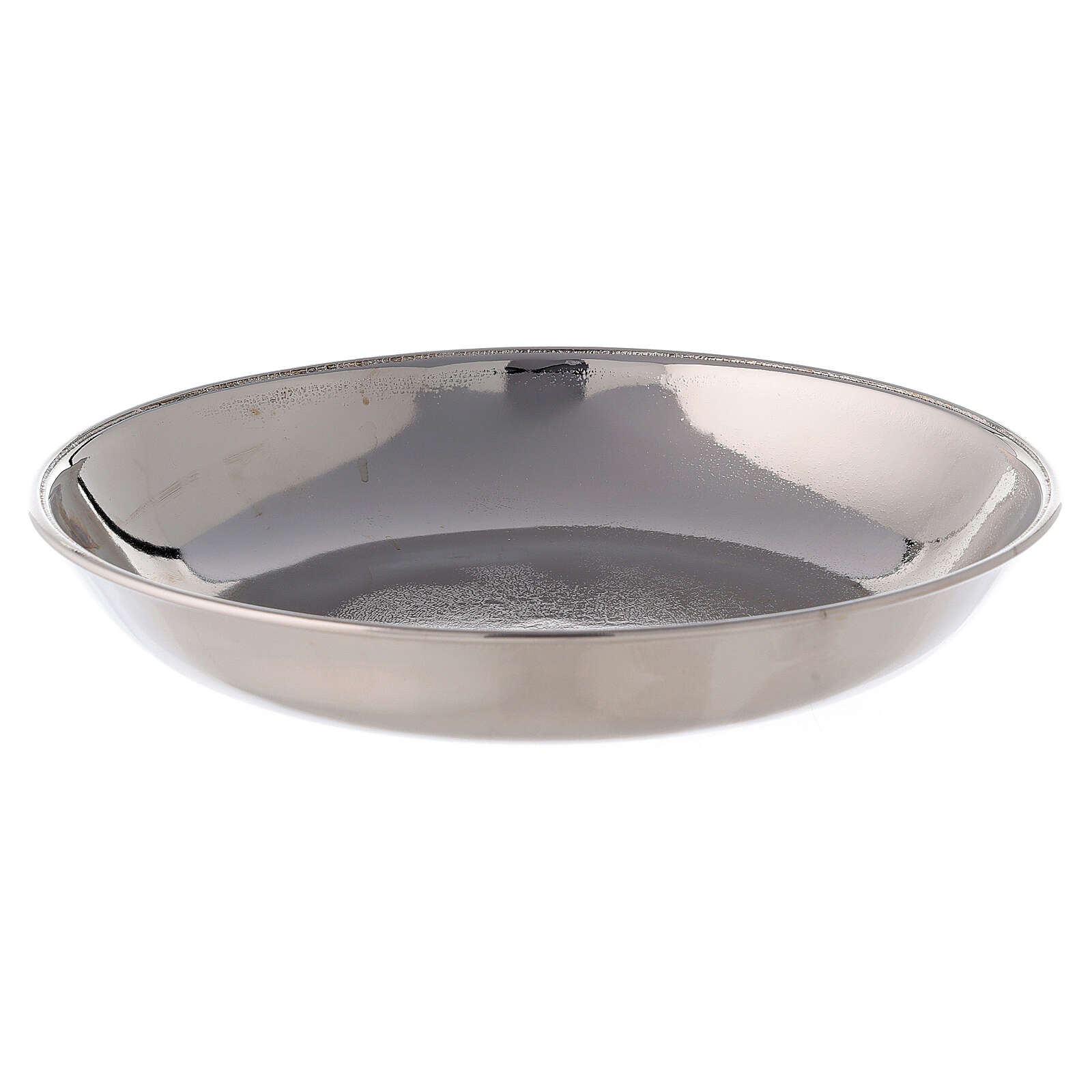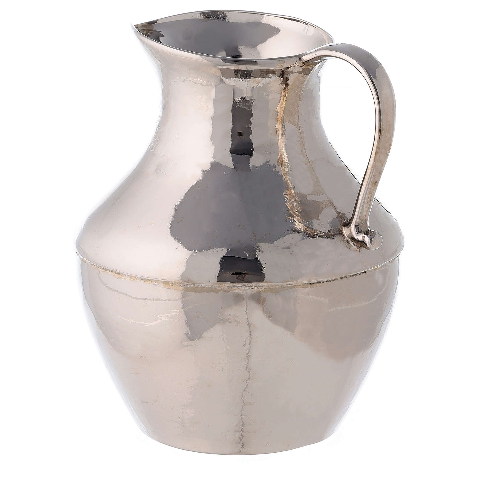 Aiguière et bassin pour manuterge en laiton nickelé brillant. Aiguière pour manuterge avec bassin, réalisés en laiton nickelé avec finition brillante.