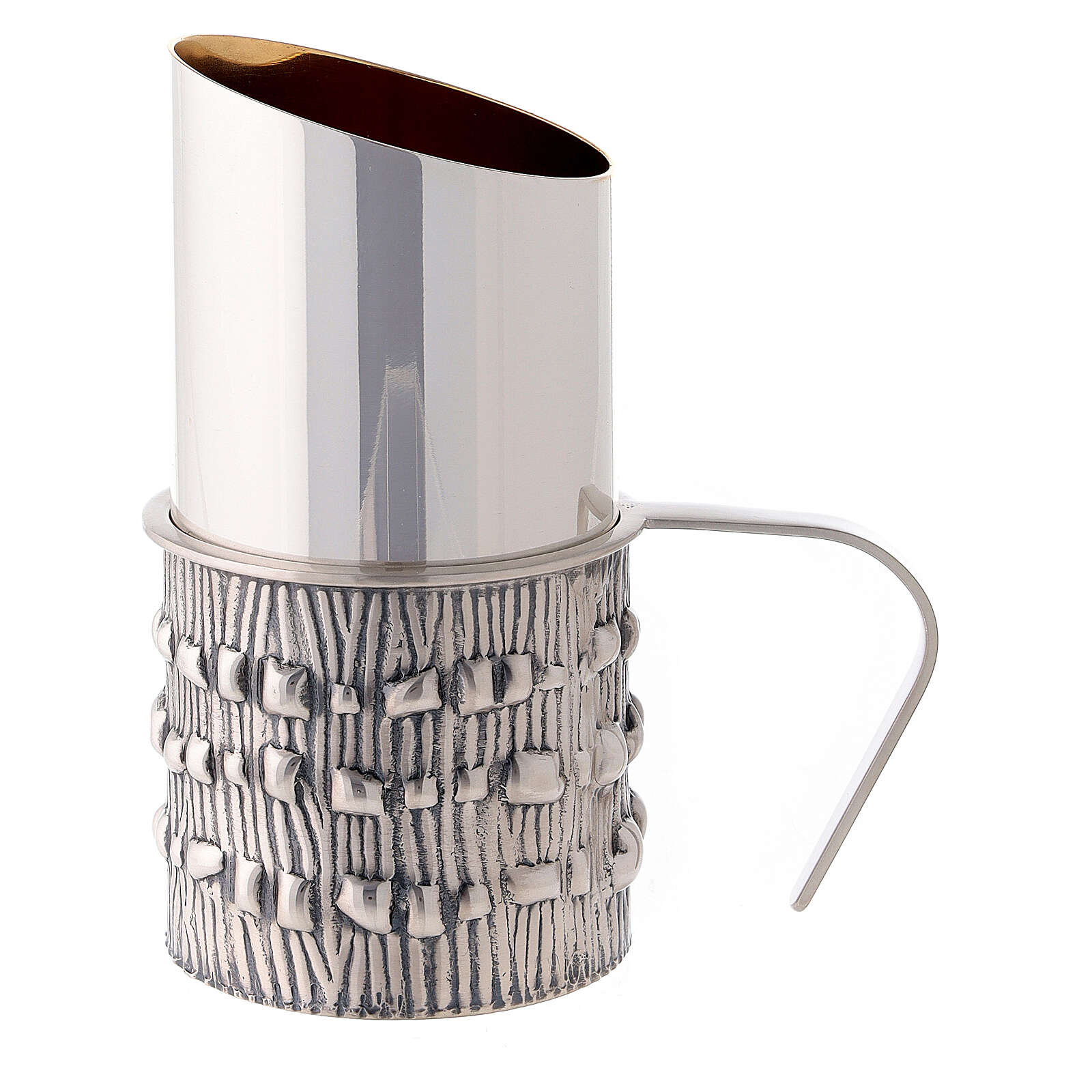 Aiguière lavage mains Molina avec bassin laiton argenté. Service pour lavage des mains composé d'une aiguière et d'un bassin en laiton argenté, appartenant à la gamme "Artesania Sacra", réalisée par l'entreprise espagnole Molina. Ce set liturgique de haute qualité est le fruit de travail artisanal d'une équipe d'orfèvres expérimentés.