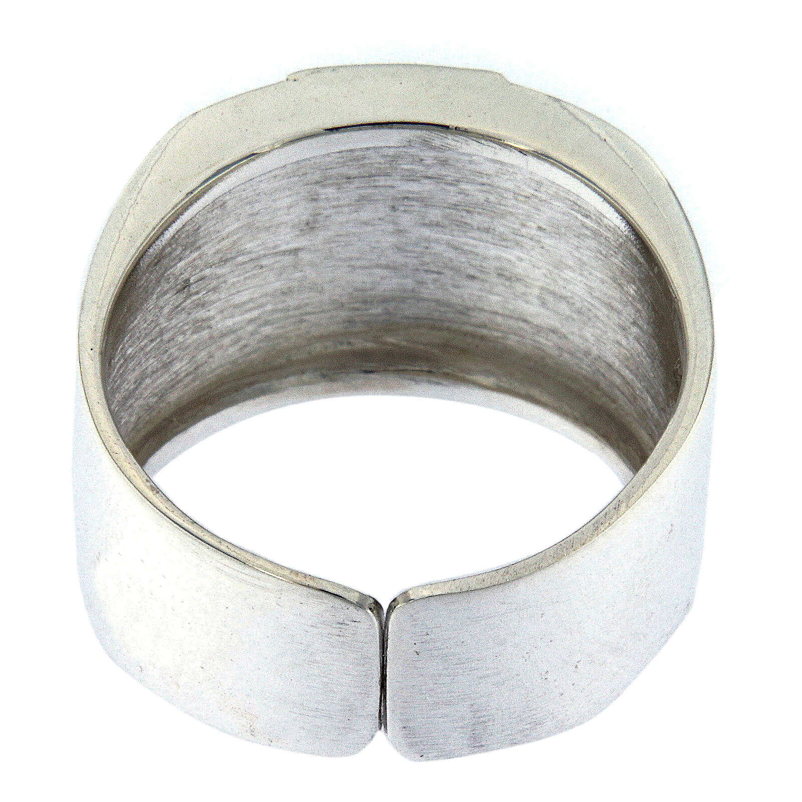Anneau épiscopal en argent 925 avec Chi-Rho alpha et oméga. Anneau pour évêque réalisé de manière artisanale en Italie par des artisans avec une longue expérience et compétents dans le travail de l'argent pour garantir un produit d'haute qualité. Anneau réglable.
