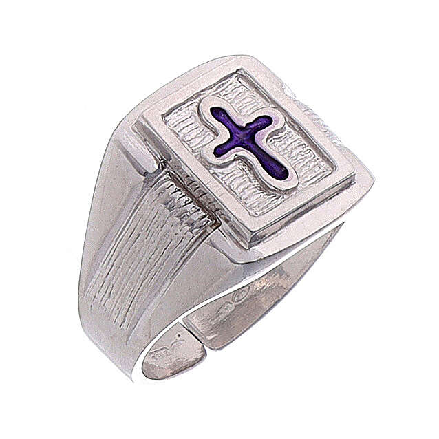 Anneau épiscopal argent 925 avec croix émaillée. Anneau pour évêque réalisé de manière artisanale en Italie par des artisans avec une longue expérience et compétents dans le travail de l'argent pour garantir un produit d'haute qualité. Anneau réglable.