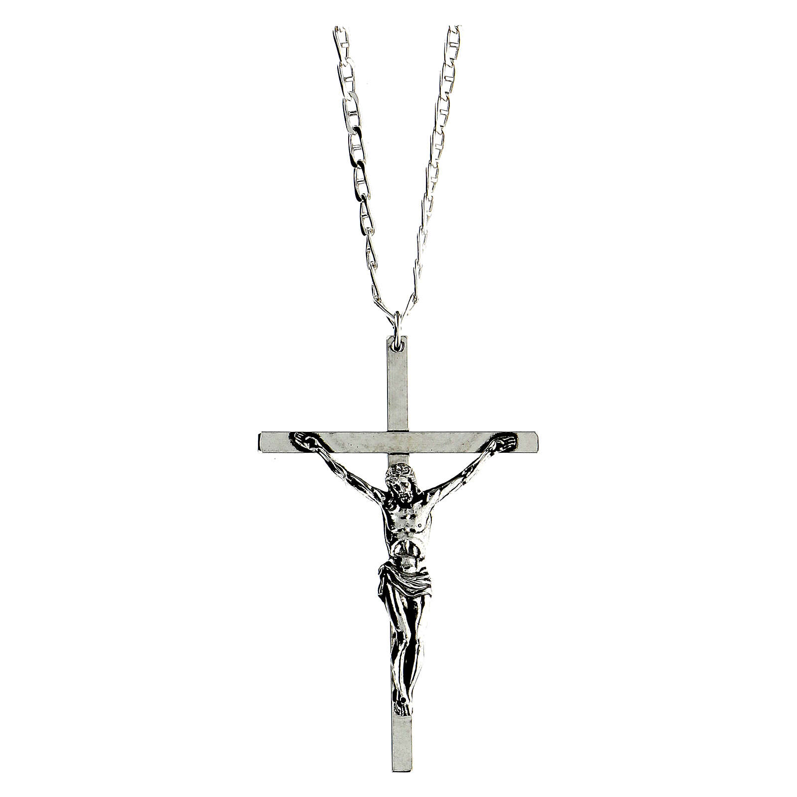 Croix pectorale argentée crucifix 10x6,5 cm