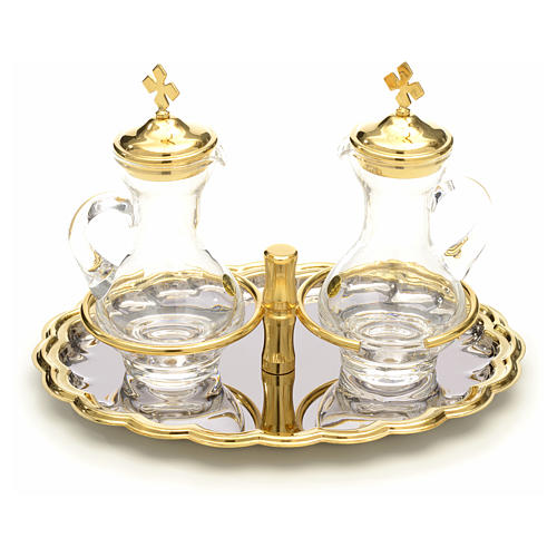 Service de burettes réalisé dans une petite entreprise italienne avec une forte expérience dans la production d'objets liturgiques. Tous les matériaux utilisés sont d'haute qualité et de provenance italienne.