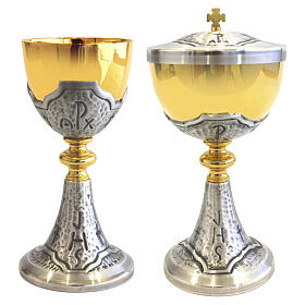 Calices de messe, ciboires et patènes en métal doré ou argenté en diverses formes et dimensions pour la célébration de l'eucharistie. Calices, ciboires et patènes pour la messe en acier, argent bronze et laiton avec coupe dorée. Dans cette catégorie vous trouverez des calices et des ciboires de style classique et traditionnel ou de style contemporain et moderne.