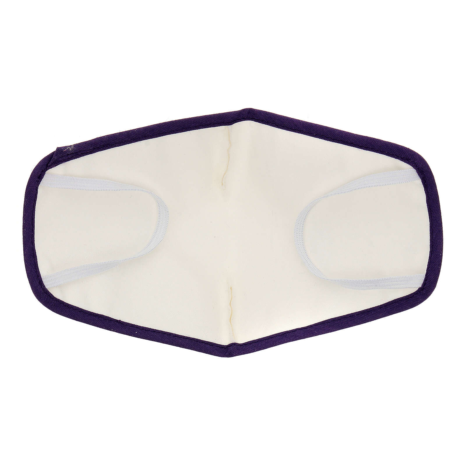 Masque en tissu réutilisable bord violet. Masque réutilisable en tissu couleur ivoire avec bord violet, 100% fibre de bambou à l'intérieur et 100% polyester à l'extérieur.Caractéristiques :- fraîche et respirante- douce au toucher- hypoallergénique- confortable et légère.Ce modèle couvre bien la bouche et le nez en permettant de parler librement sans que le masque ne se déplace. Lavable à la main à l'eau froide avec désinfectant.Attention : il ne s'agit pas d'un dispositif de protection individuel, mais d'un masque filtrant conforme à l'article 16 alinéa 2 du Décret Législatif italien n. 18/2020.