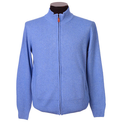 Blouson avec fermeture éclair In Primis, 10% cachemire, 40% laine mérinos bleu.