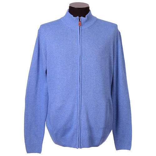 Élégant et pratique, conçu et fabriqué par In Primis, ce blouson bleu ciel est réalisé avec un précieux mélange composé de 10% de cachemire, 40% de laine mérinos, 25% de viscose et 25% de nylon, offrant chaleur, douceur, élasticité et résistance.