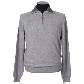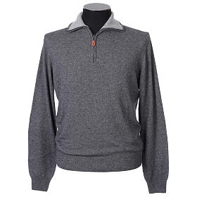Pull col montant avec tirette anthracite 10% cachemire 40% laine mérinos In Primis