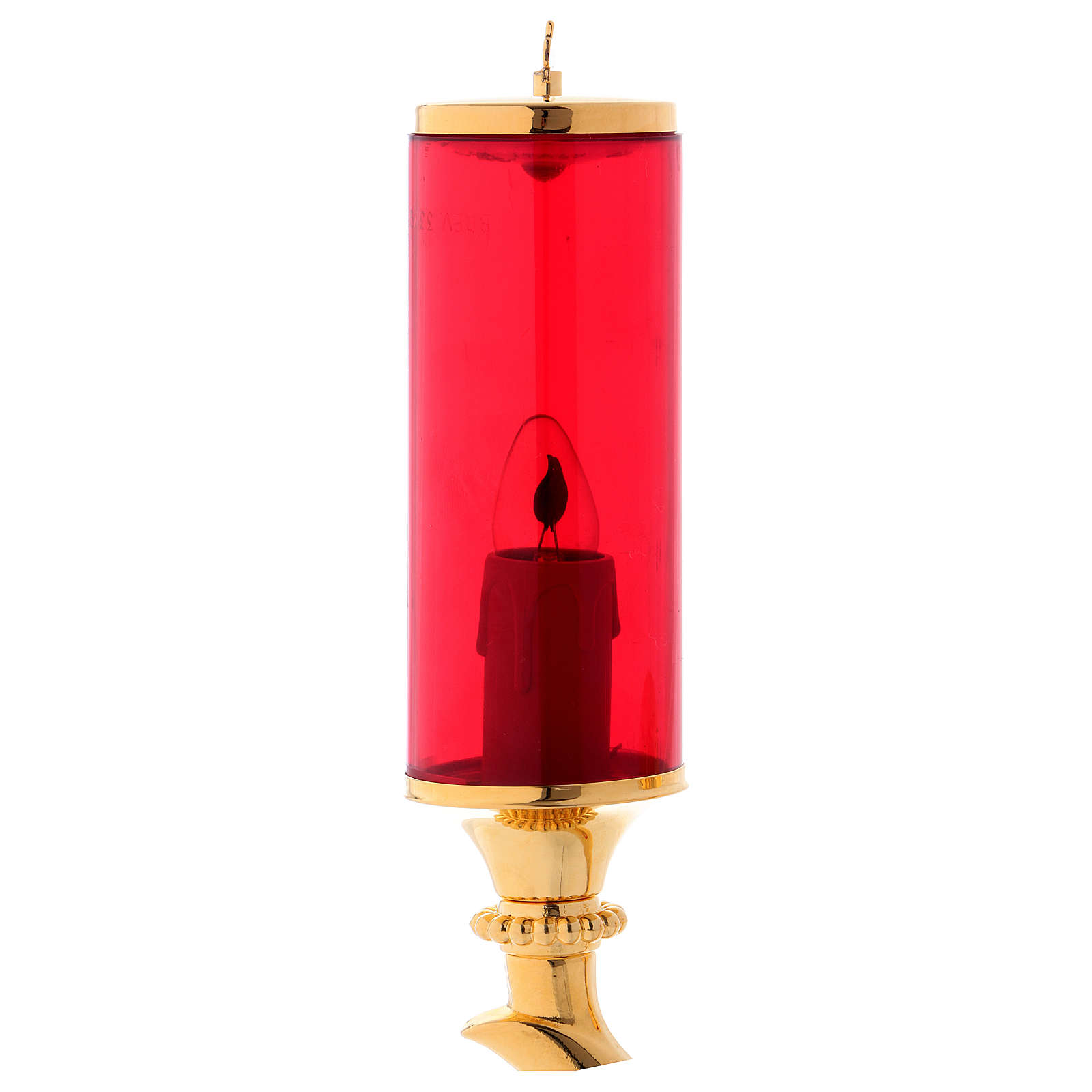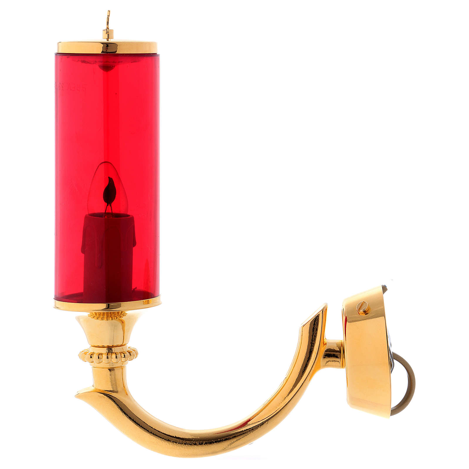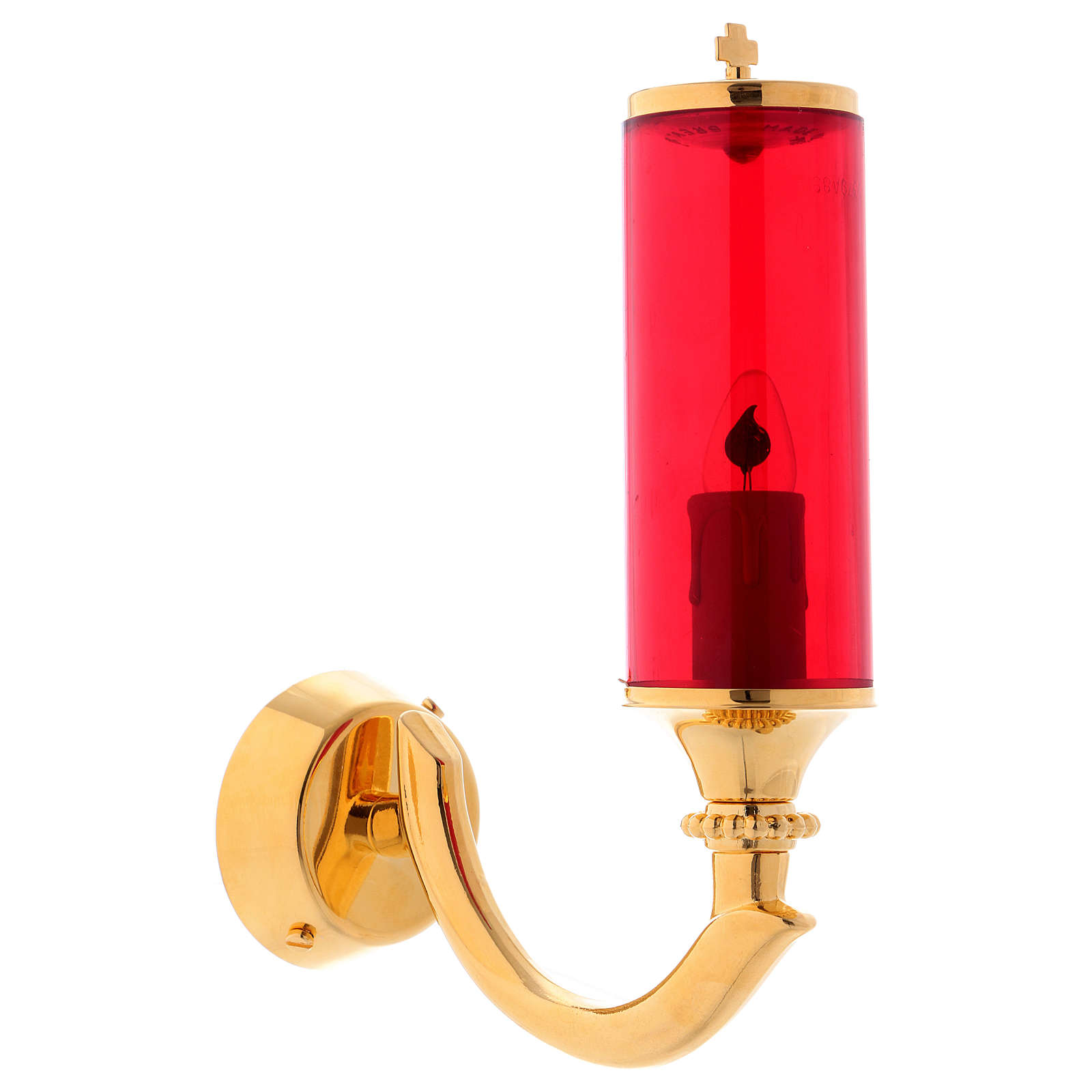 Applique murale complète en verre plastique rouge électrique. Applique murale électrique avec support en laiton doré décoré et lampe en verre plastique rouge. Câble électrique déjà prêt pour être relié à une rallonge.