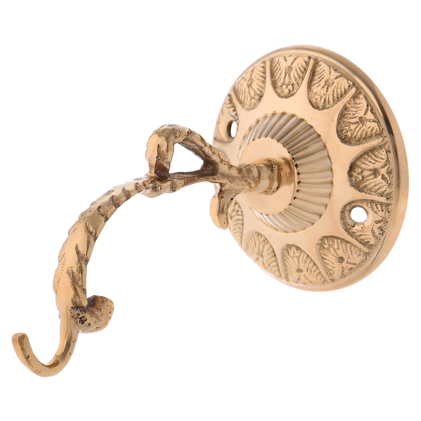 Bras lampe pour Saint Sacrement en laiton doré. Bras mural pour lampe du Saint Sacrement, réalisé à la main en laiton doré en style ancien et enrichi de décoration.Livré sans vis de fixation.