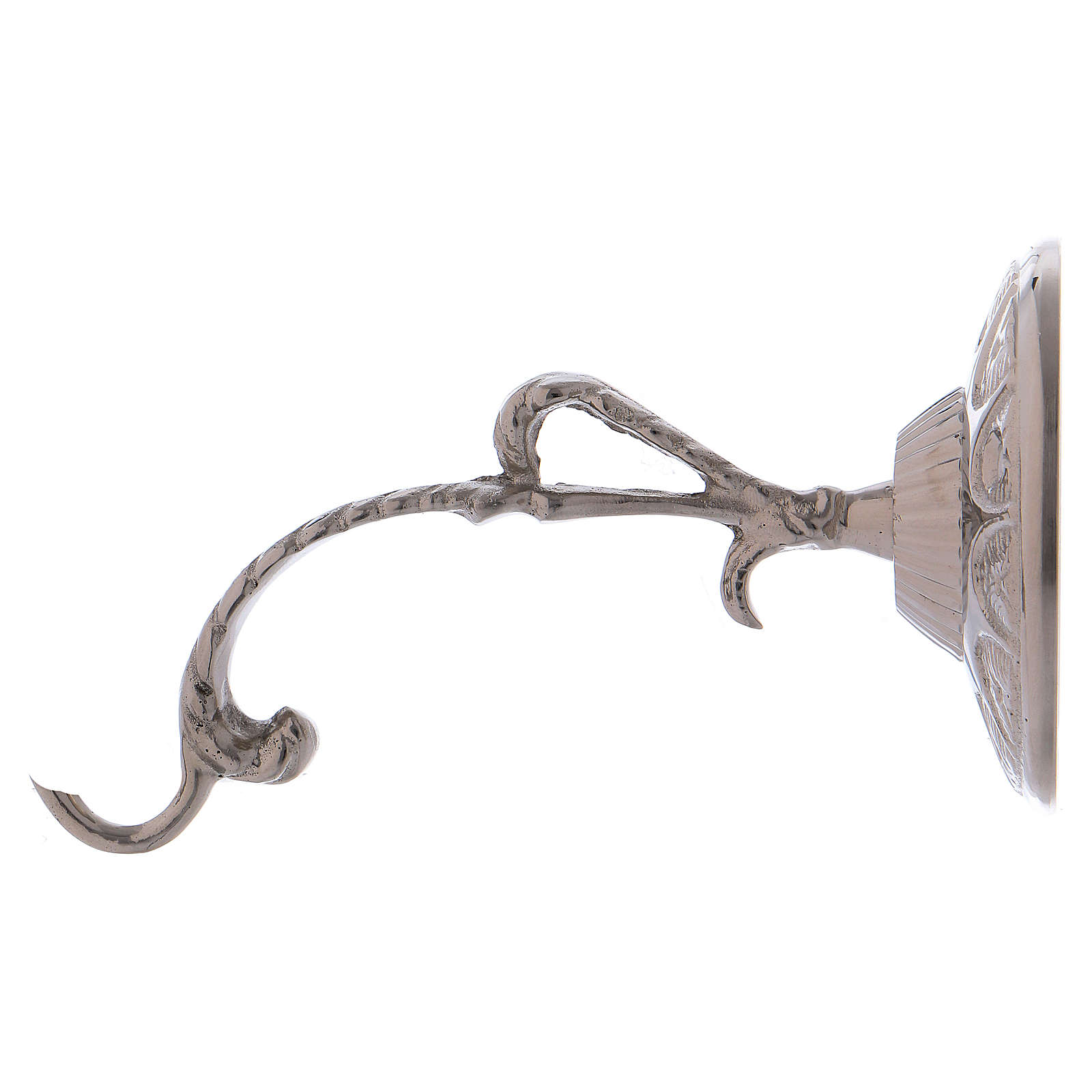 Bras lampe pour Sanctuaire laiton argenté. Bras pour lampe de Sanctuaire en laiton argenté brillant enrichi de motifs décoratifs, fourni avec vis de fixation.