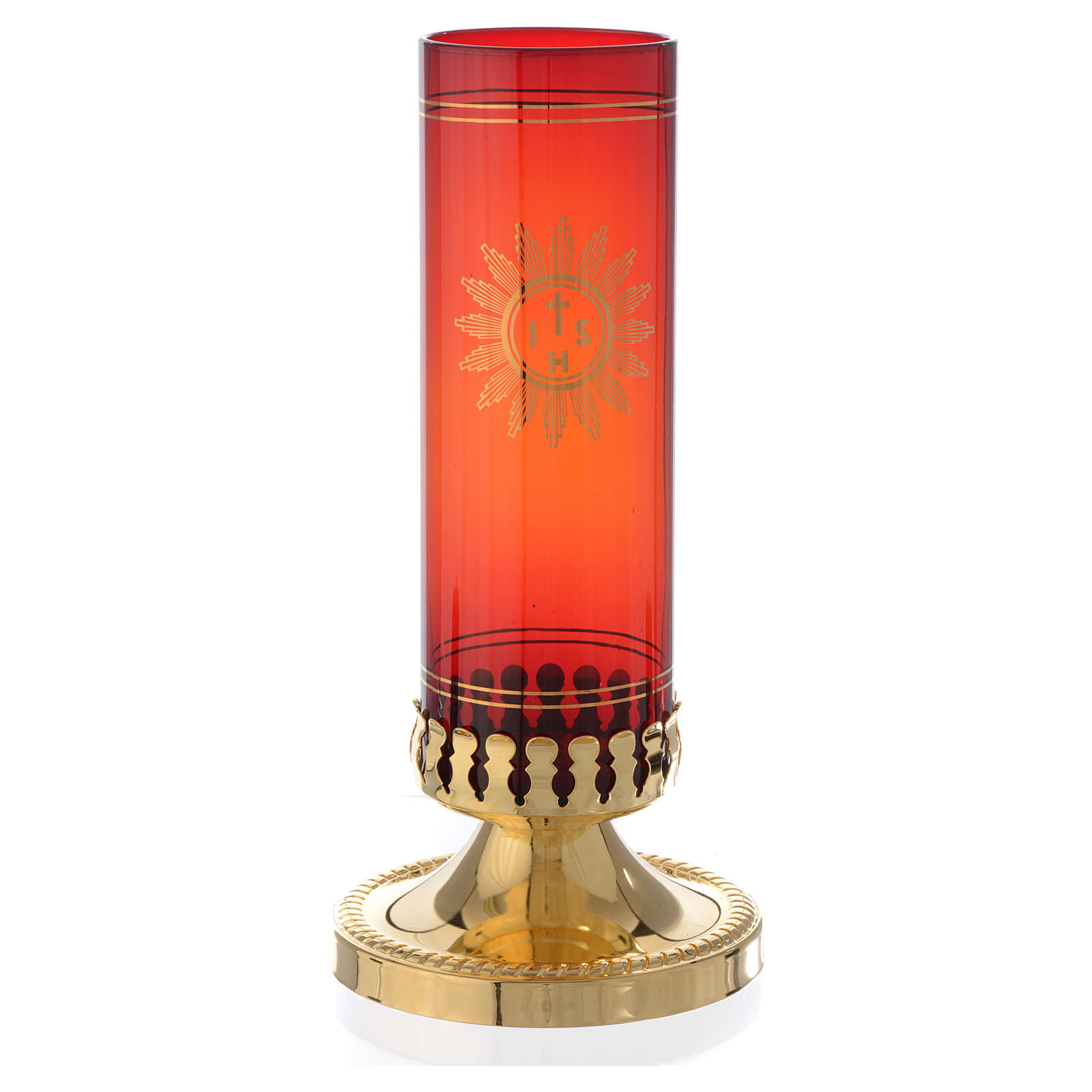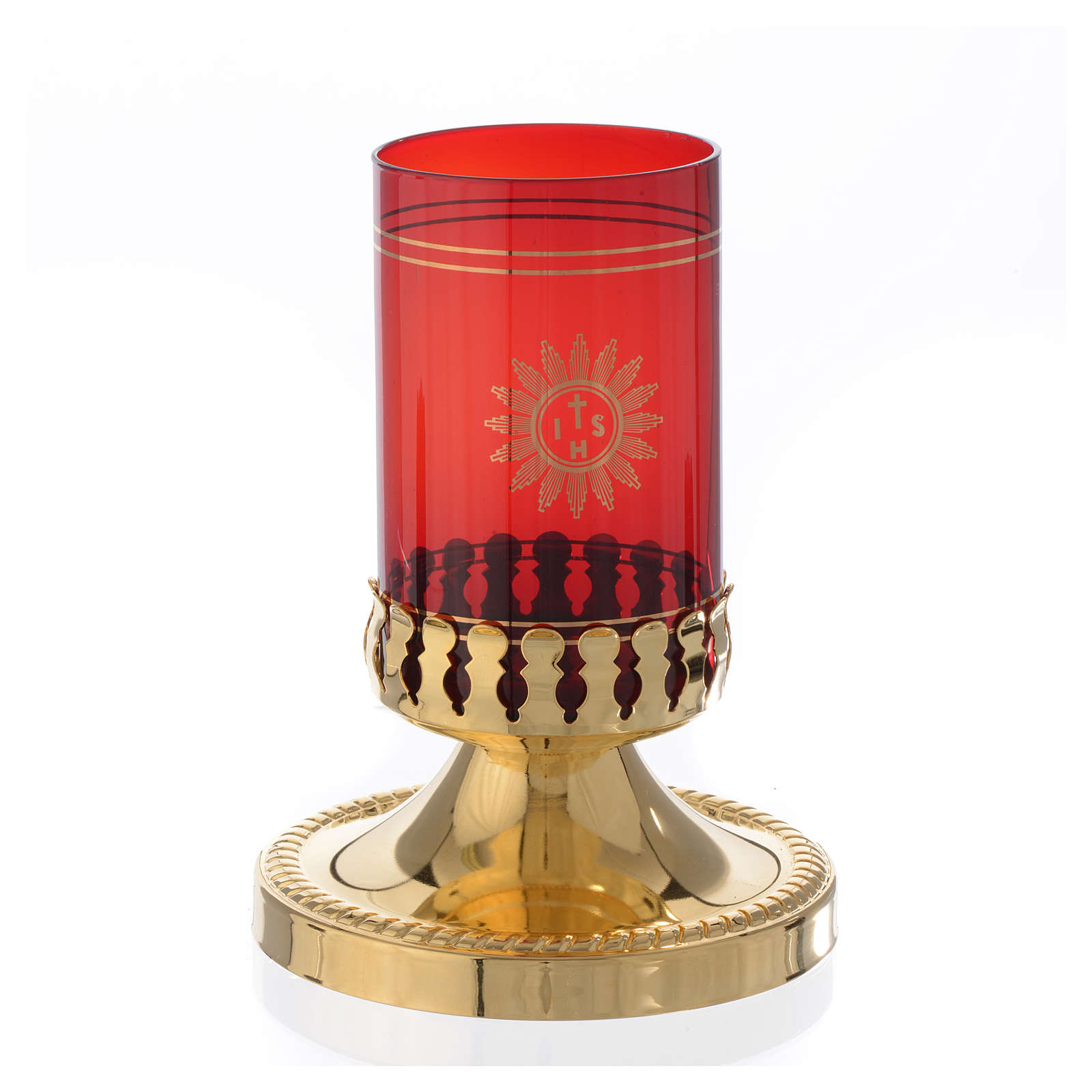 Lampe porte-verre rouge à poser. Lampe en laiton pour verre rouge ou pour demi-verre de 7,5cm de diamètre. VERRE NON COMPRIS.