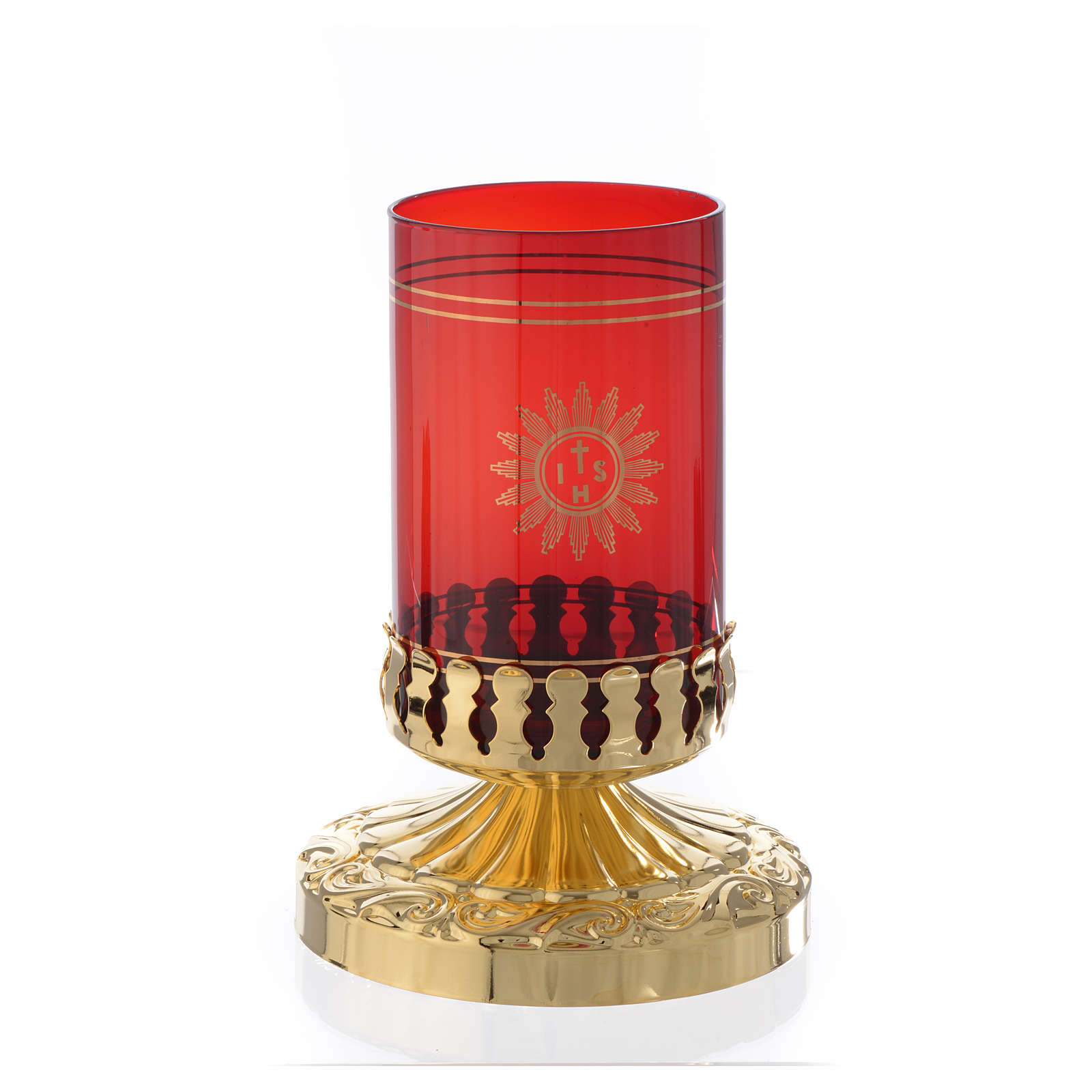 Lampe Sanctuaire pour verre style empire. Lampe pour Sanctuaire style empire en laiton doré, adaptée pour verre ou demi-verre rouge de 7,5cm de diamètre. VERRE NON INCLUS.