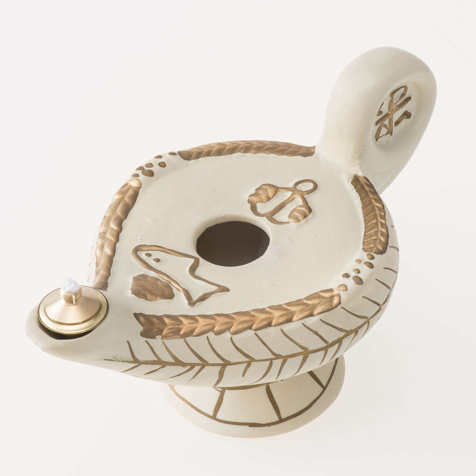 Lampe d'Aladin terre cuite ivoire mod. Alba. Lampe à huile pour églises et lieux sacrés dotée de mèche complète.