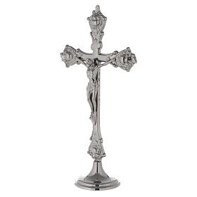 Crucifix d'autel avec base pour cierge en laiton argenté de 35 cm