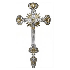 Croix de procession et supports porte croix. Cette croix est un objet liturgique utilisé pendant les processions et il est généralement tenu par un enfant de coeur devant le prêtre quand il entre dans l'église. Vaste choix de croix de procession et de supports indiquées pour les églises en style classique ou moderne.