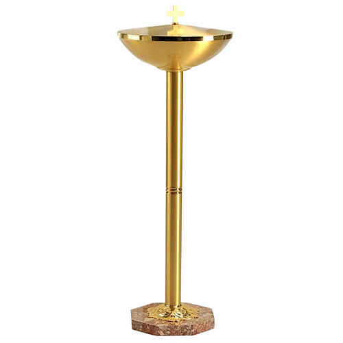 Font baptême avec des décors dorés et base en marbre. Hauteur de 110 cm. Produit réalisé à la main dans une entreprise italienne très connue dans le secteur et dans la tradition de décoration du métal pour matériel liturgique. La bonne qualité des matériaux, les dessins originaux et les phases artisanales de la réalisation ce sont des caractéristiques spéciales de cet article. Si vous souhaitez recevoir plus de renseignements appelez le 800 97 43 08 ou écrivez à servizioclienti@holyart.it