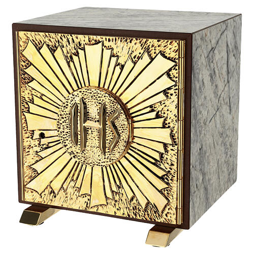 Tabernacle de table en marbre andalou avec exposition en laiton IHS