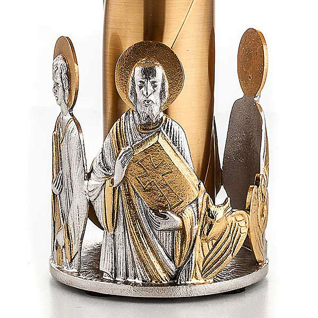 Base pour ostensoir en laiton doré avec quatre évangiles à la base du trône. Le diamètre de base mesure 18 cm. La base pour ostensoir est réalisée dans une entreprise artisanale avec une importante expérience dans ce domaine. L'article est unique grâces aux matériaux
