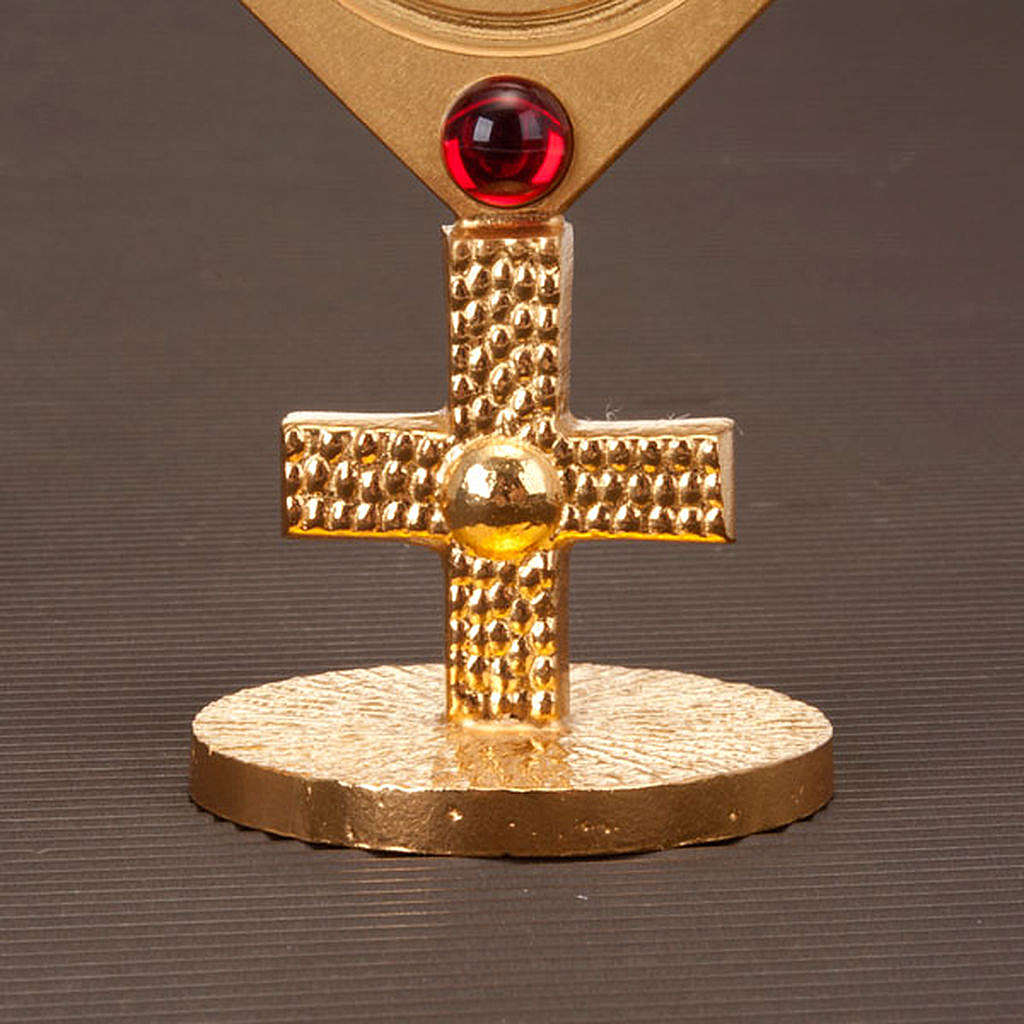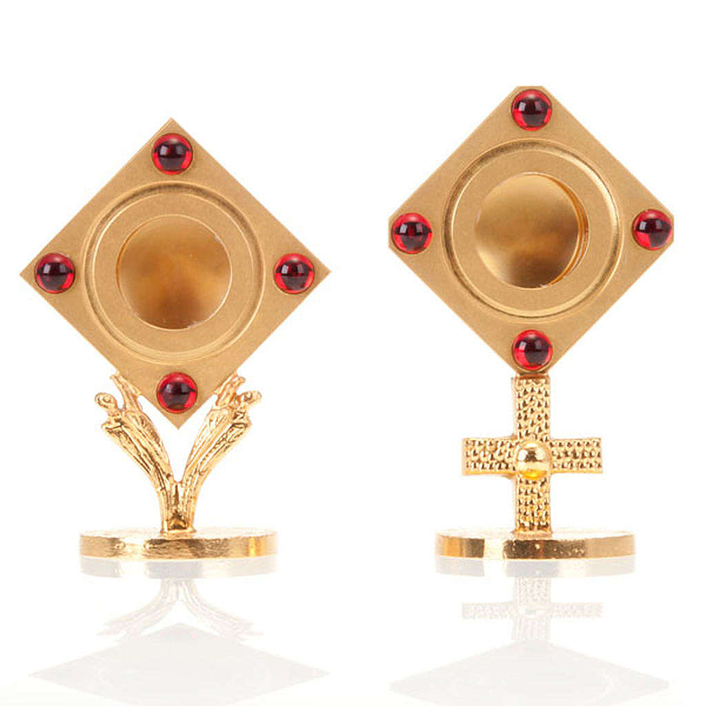 Reliquaire décoré avec pierres rouges. Le reliquaire est réalisé de manière artisanale dans une entreprise italienne connue pour la précision dans la élaboration du métal pour les objets liturgiques. Les décors sont originaux.