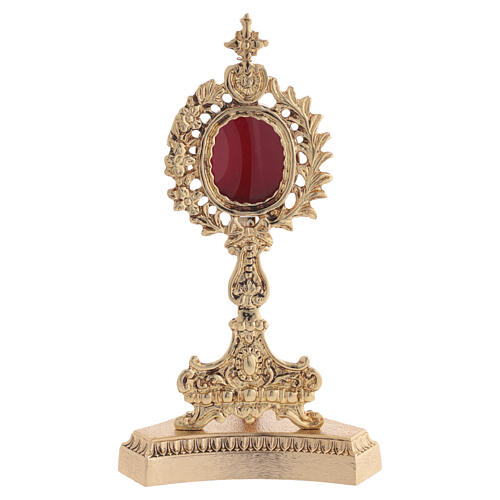 Reliquaire en laiton fondu doré en bain d'or 24k sur base avec décorations. Reliquaire complètement réalisé en Italie par des artisans avec une longue expérience dans la production objets d'orfèvrerie religieuse.
