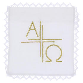 - Linges d'autel : sets en coton et polyester ou en lin avec 4 ou 5 pièces: amict, pale, corporal, purificatoire, manuterge;