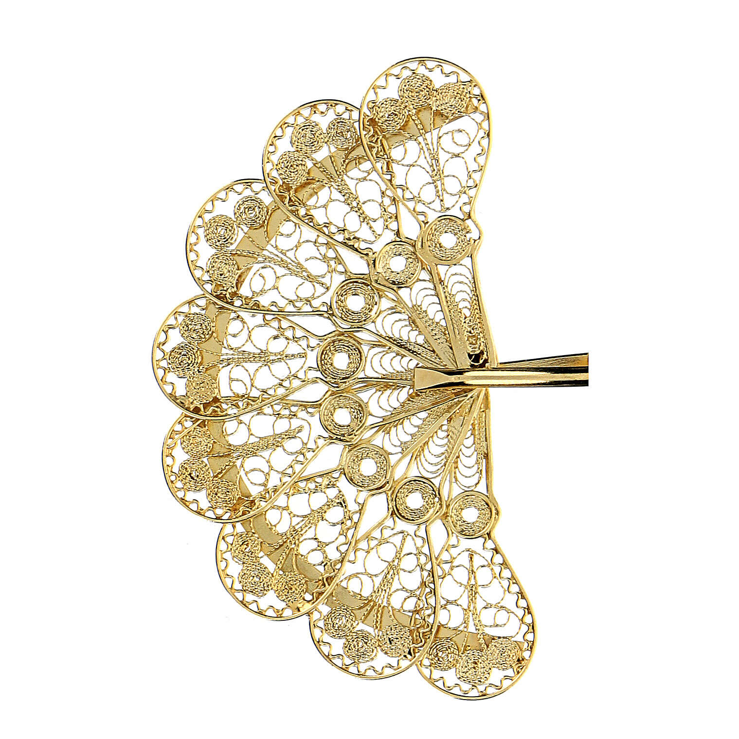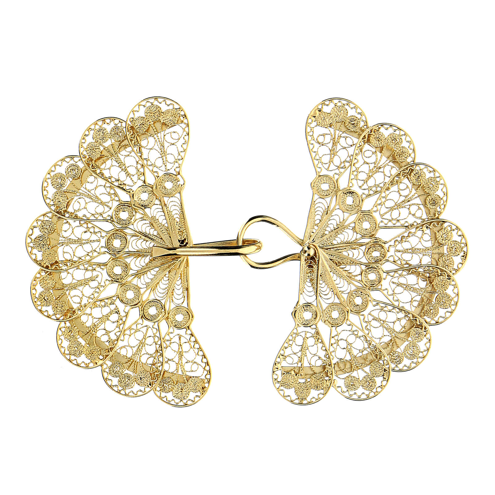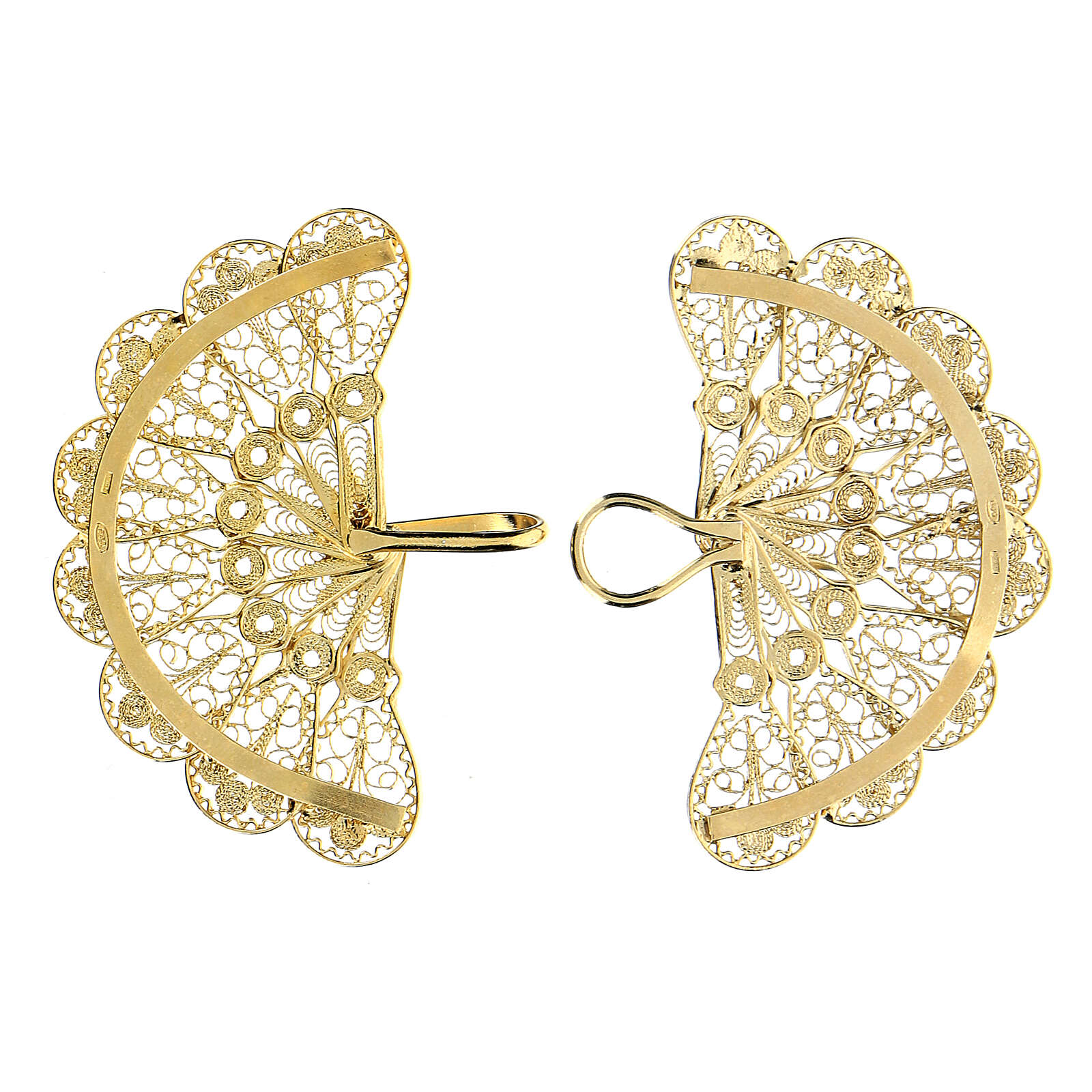Accroches chape dorées en éventail filigrane argent 925. Élégantes et précieuses attaches pour chape en filigrane d'argent 925 doré, réalisées en Italie par des artisans expérimentés dans le travail de l'argent.Poids : 15 gr.