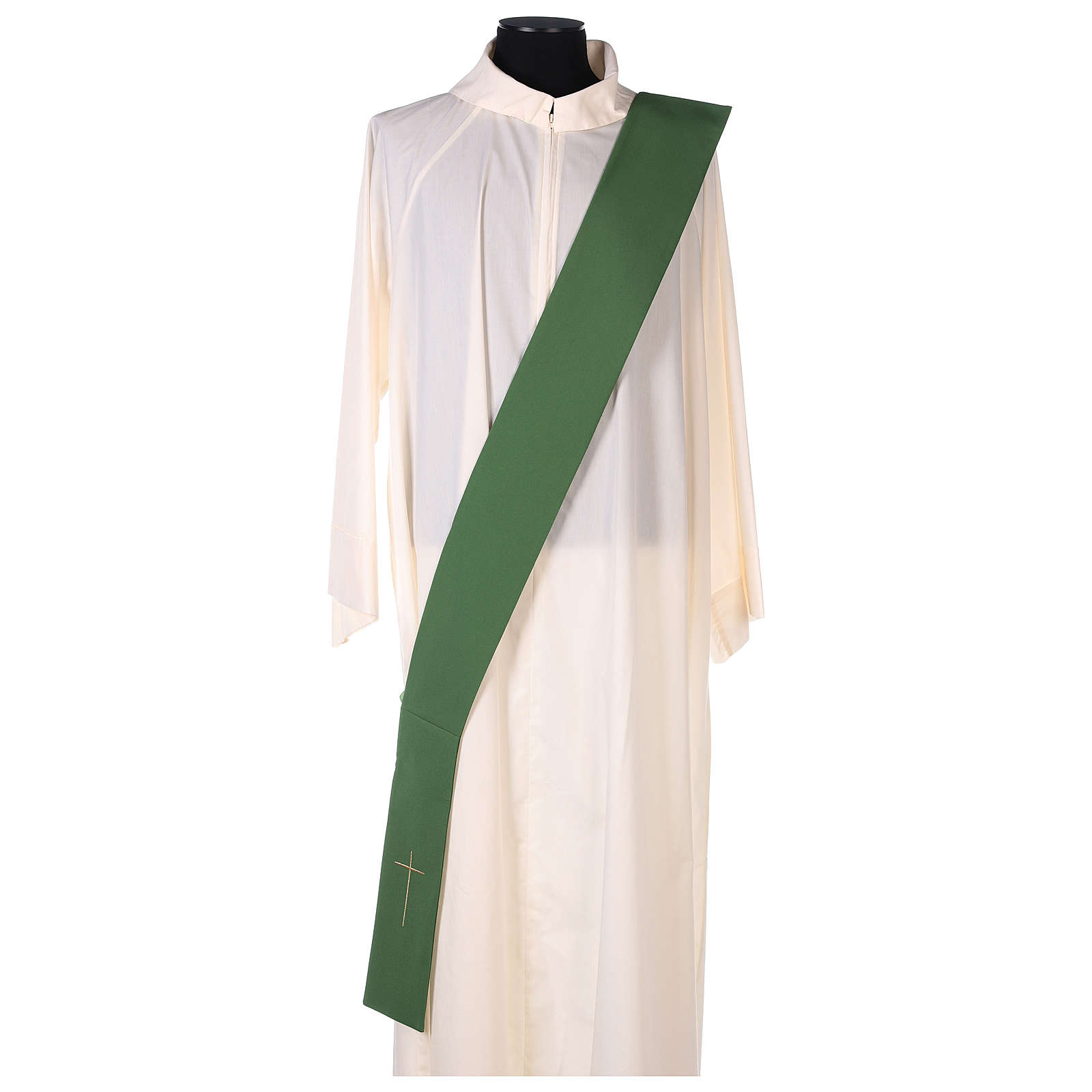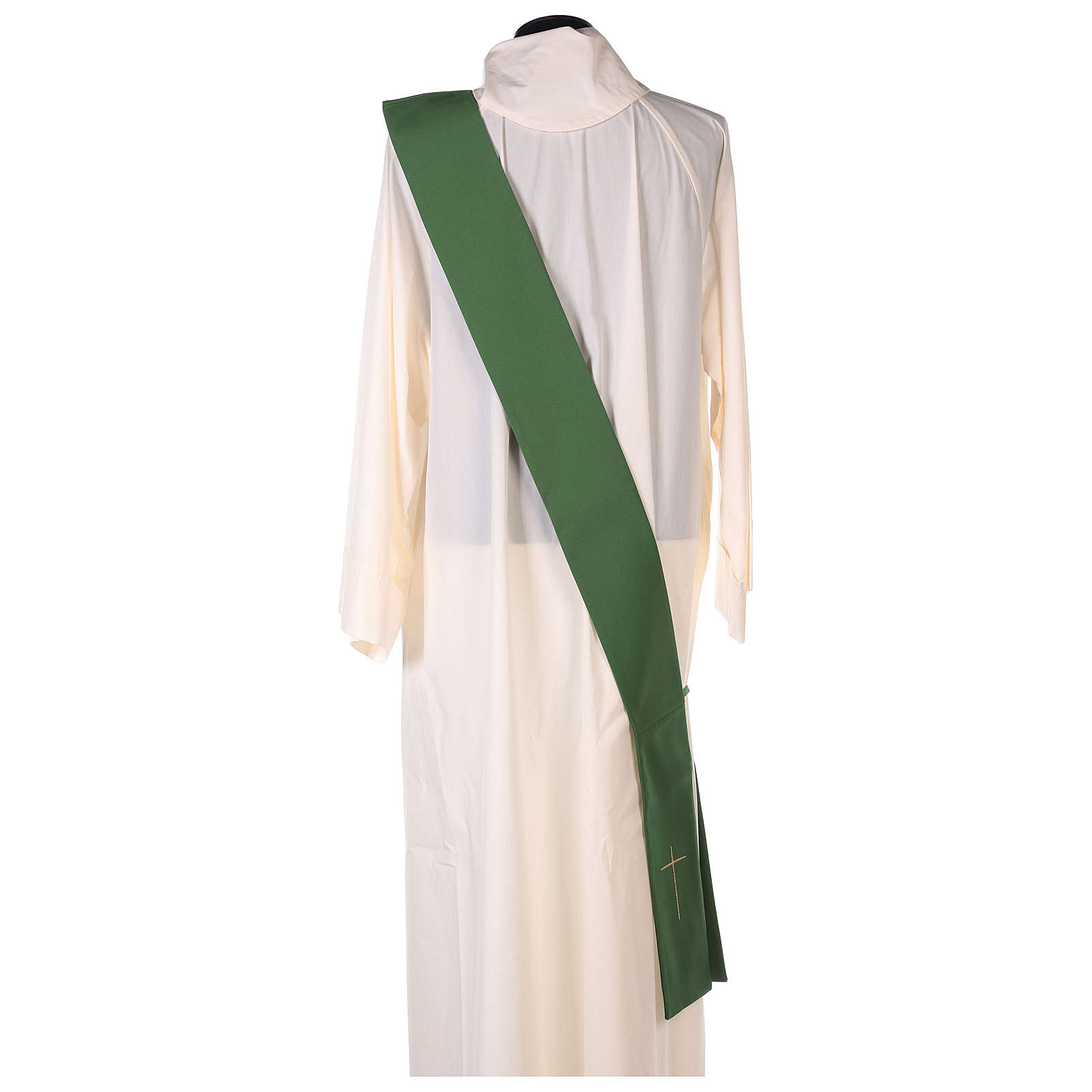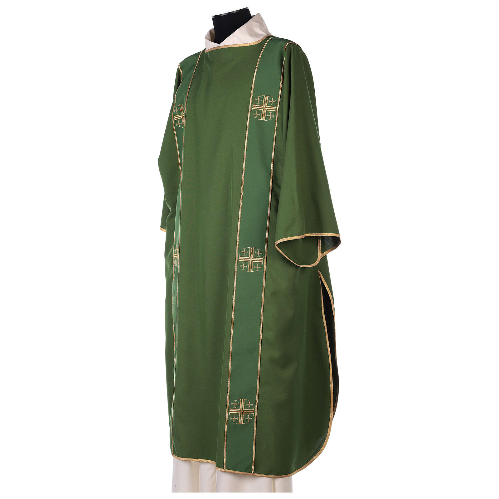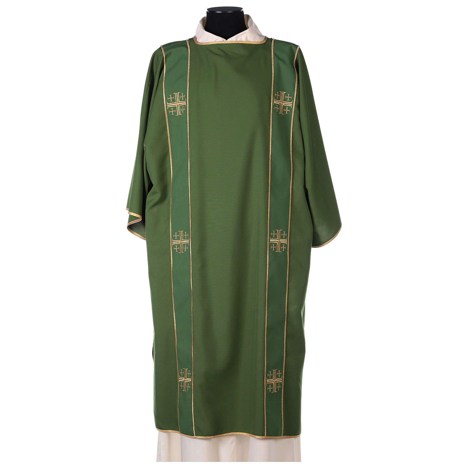 Dalmatique avec étole 100% polyester décorations en croix. Élégante dalmatique en polyester avec broderie de 5 croix et bords en fil doré, livrée avec étole assortie.Ornement liturgique confectionné dans un atelier de couture polonais.Disponible dans les 4 couleurs liturgiques.