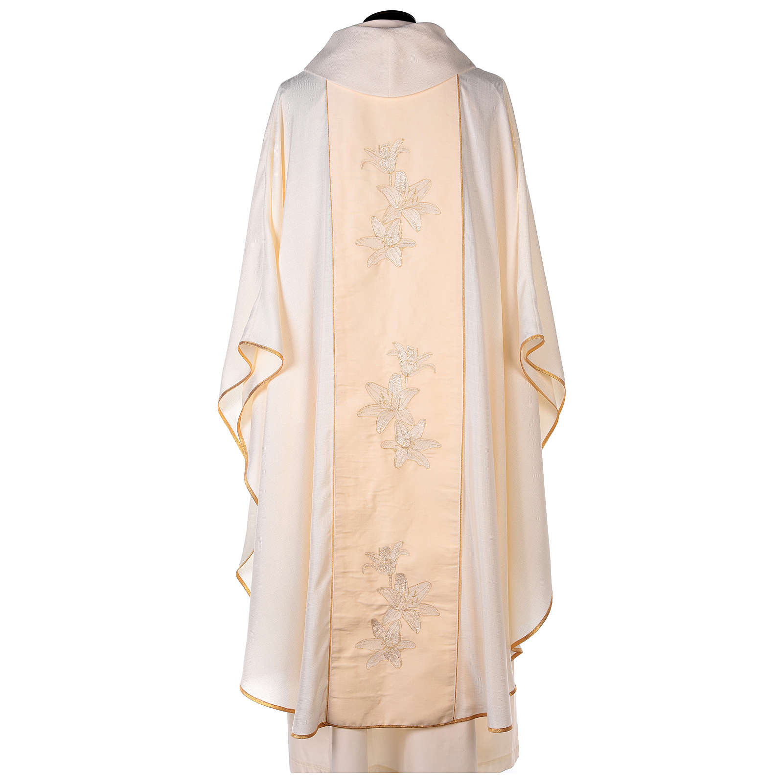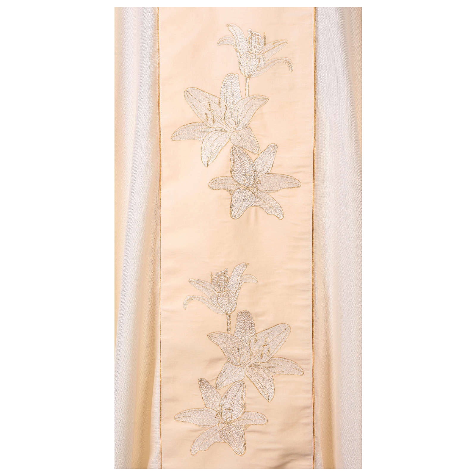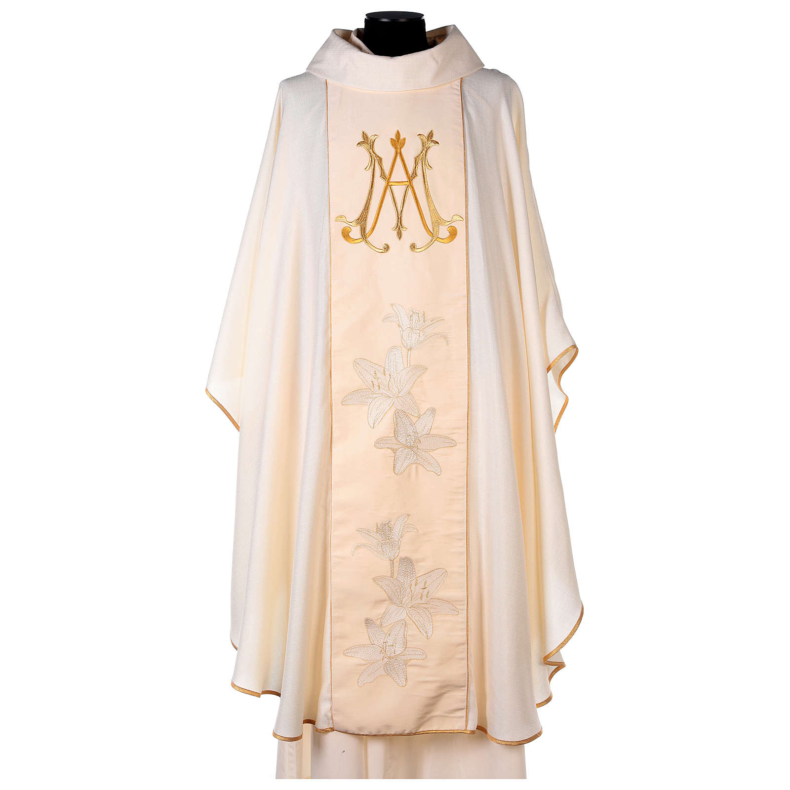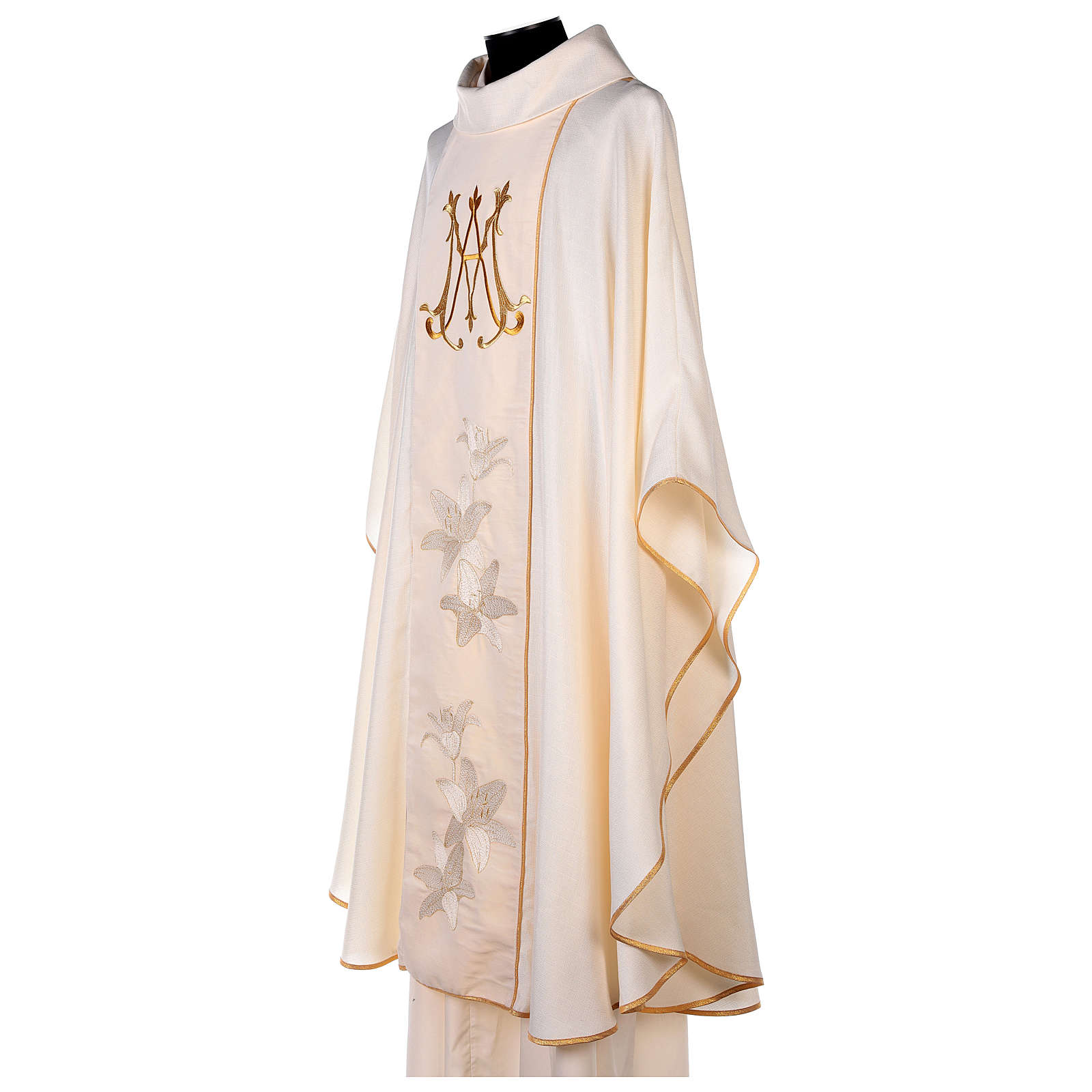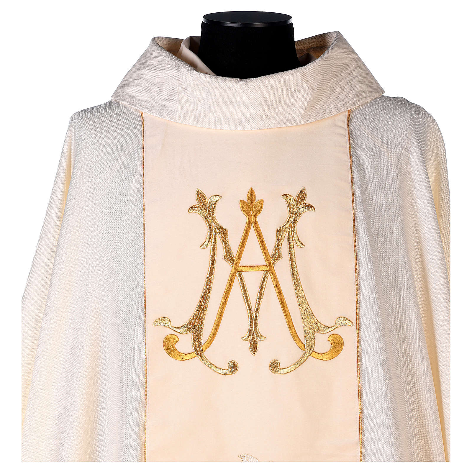 Chasuble mariale ivoire lys dorés monogramme Marie
