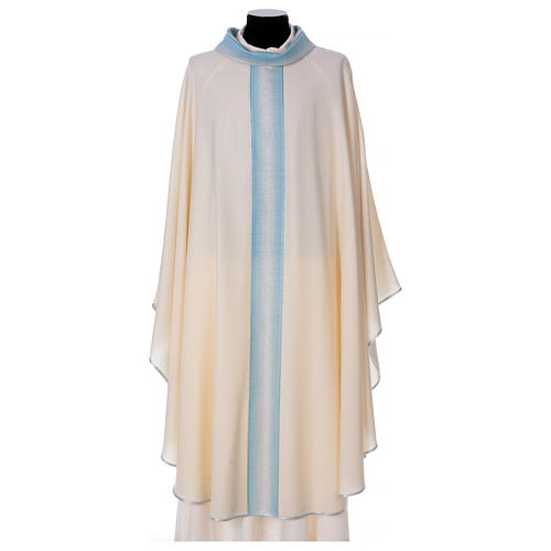 STOCK Chasuble ivoire en pure laine avec décoration bleu ciel Gamma