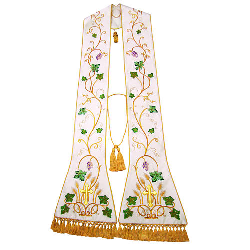 Etole gotique brodée à la main en 100% soie naturelle. Étole liturgique entièrement réalisée en Italie dans un atelier de couture avec une longue expérience dans la confection d'ornements liturgiques, en garantissant un produit de haute qualité et beauté.