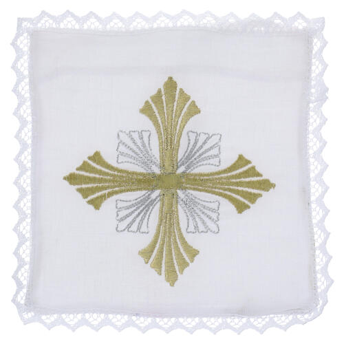 Linge d'autel complet croix dorée 100% lin