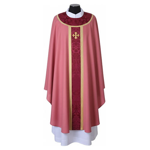 Chasuble Slabbinck rose damas avec croix brodée.