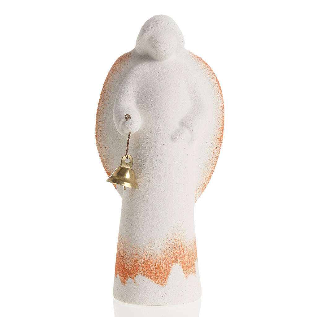 Ange avec clochette en argile réfractaire. Statue stylisée réalisée à la main, en Italie, en argile réfractaire blanche. L'argile est travaillée et moulé à la main et après cuite à plus de 1000°C. Produit d'haute qualité complètement réalisé en Italie dans le Centre Ave de Loppiano (Florence).