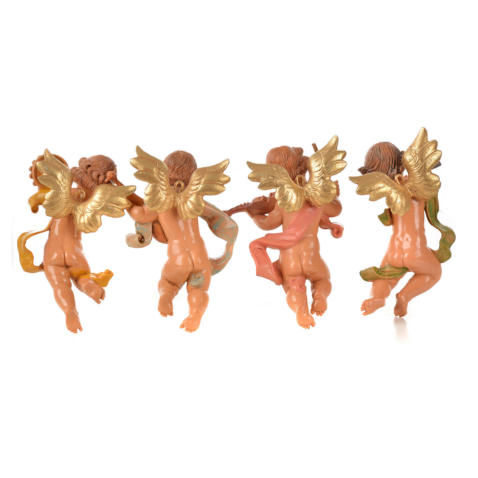 Angelots musiciens 11 cm Fontanini 4 pcs. Lot de 4 anges en pvc peints à la main, réalisés en Italie par l'usine Fontanini.