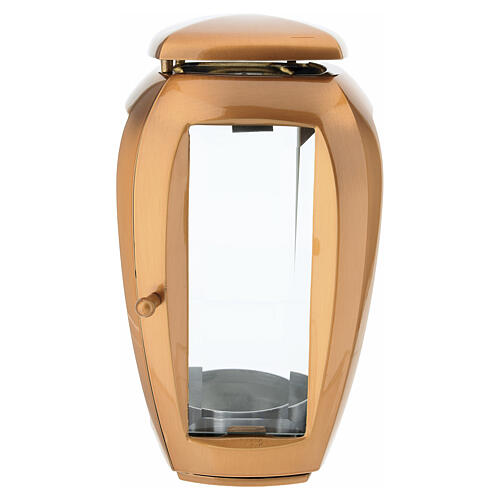 Lampe funéraire pour extérieur en laiton finition bronze, bombée, pour bougies 7 cm.