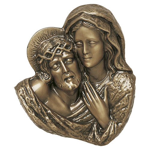 Plaque murale Pietà en bronze pour extérieur.
