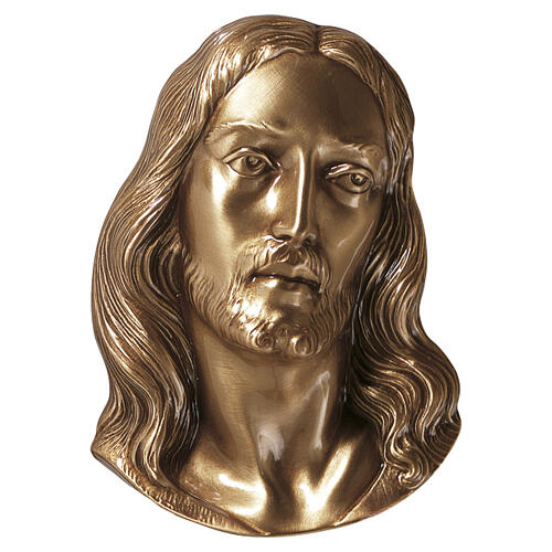 Plaque funéraire en bronze, représentant le visage de Jésus Christ détouré. Réalisé en Italie, ce haut-relief est parfait pour être apposée sur des pierres tombales et des murs.