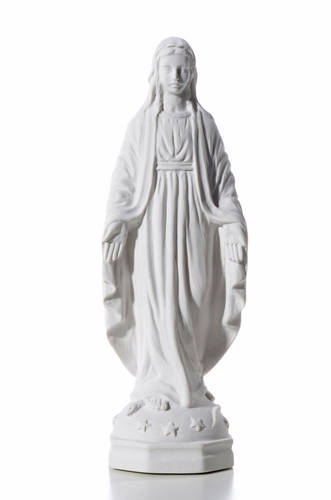 Statue applique Vierge Immaculée 30 cm. Statue réalisé en poussière de marbre de Carrara.