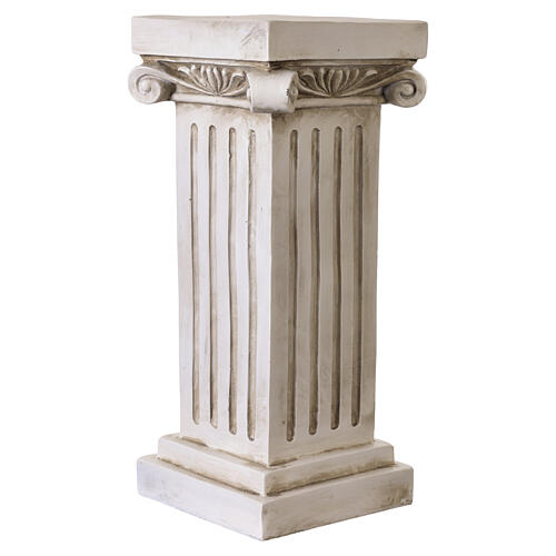Base en forme de colonne dorique pour statue d'extérieur en résine claire avec finition vieillie.