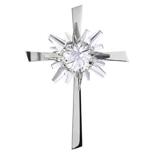Croix murale en acier avec flamme en cristal de 20x15x2,5 cm.