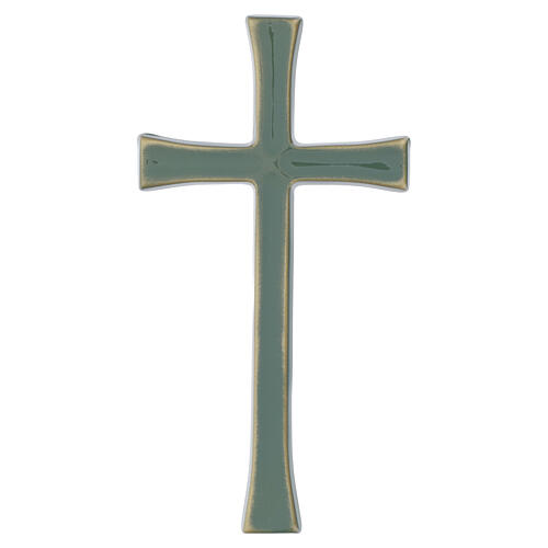 Croix murale à structure verticale continue et au développement régulier, caractérisée par une finition uniforme vert d'eau.
