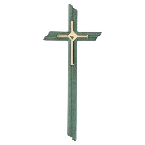 Conçue avec un développement vertical équilibré et une surface continue, cette croix funéraire se caractérise par une finition vert pompéien uniforme.
