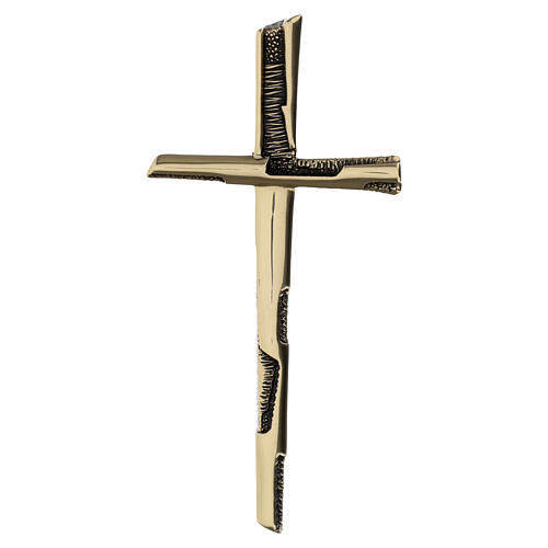 Croix destinée à la fixation murale, présentant une surface homogène et une continuité visuelle du matériau.