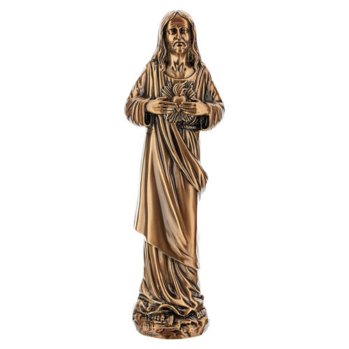 Statue Sacré-Cœur de Jésus effet bronze pour extérieur, à poser au sol, 40 cm.