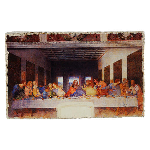 Cène Léonard Bottega Tifernate essential 9x12 cm. Petit tableau de 9x12 cm, représentant un détail de l'oeuvre de " La Cène " de Léonard de Vinci, faisant partie de la gamme Linea Aurea de Bottega Tifernate.