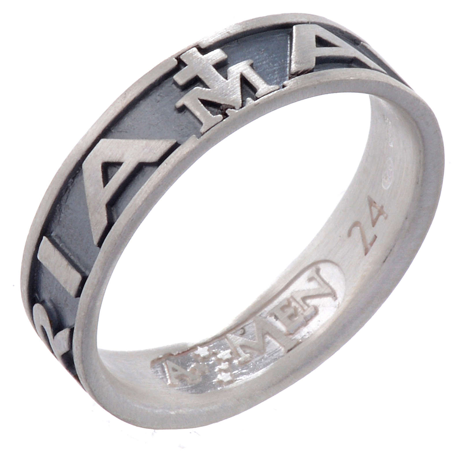 Bague AMEN Ave Maria argent 925 bruni. Bague de prière AMEN en argent 925 bruni avec inscription Ave Maria, réalisée en Italie dans l'entreprise productrice de bijoux AMEN, garantie de qualité.